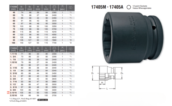 1-1/2” 12 POINT SOCKETS 17405A