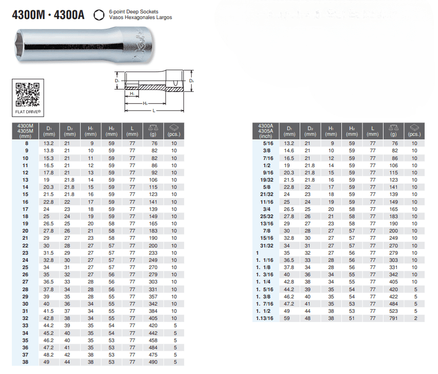 1/2″ 6 POINT DEEP SOCKETS 4300M