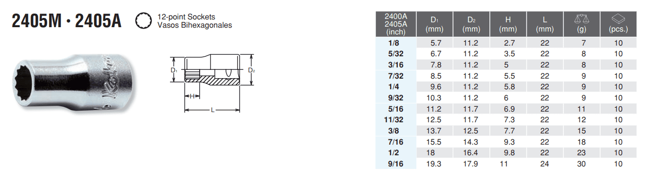 1/4″ 12 POINT SOCKET 2405M