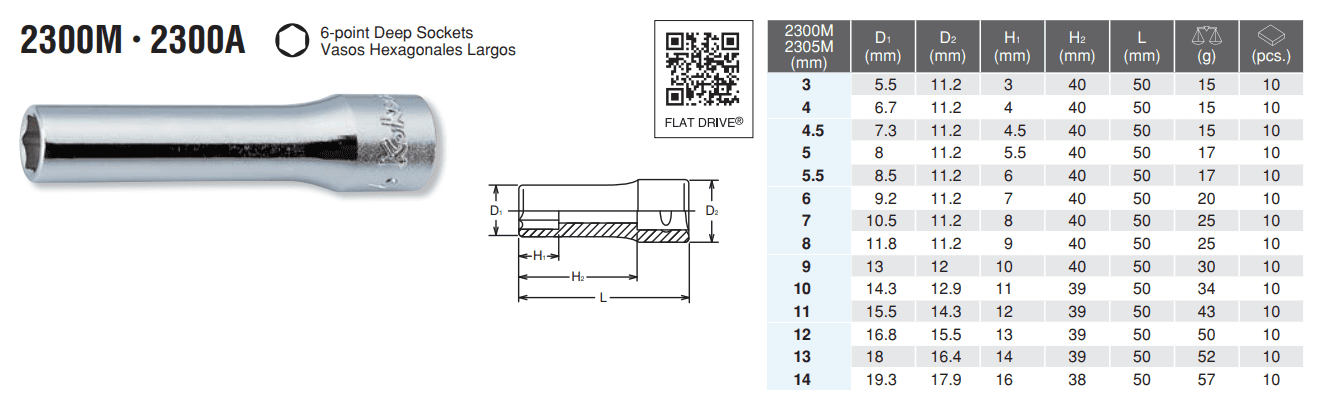 1/4″ 6 POINT DEEP SOCKETS 2300M