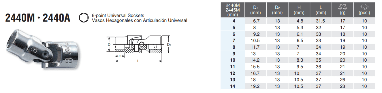 1/4″ 6 POINT UNIVERSAL SOCKET 2440M