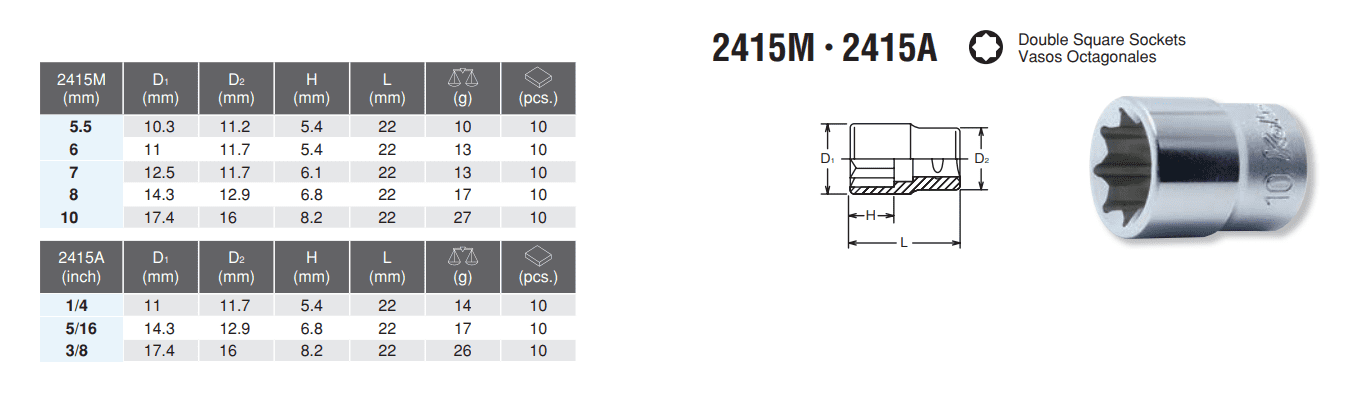 1/4″ DOUBLE SQUARE SOCKET 2415M