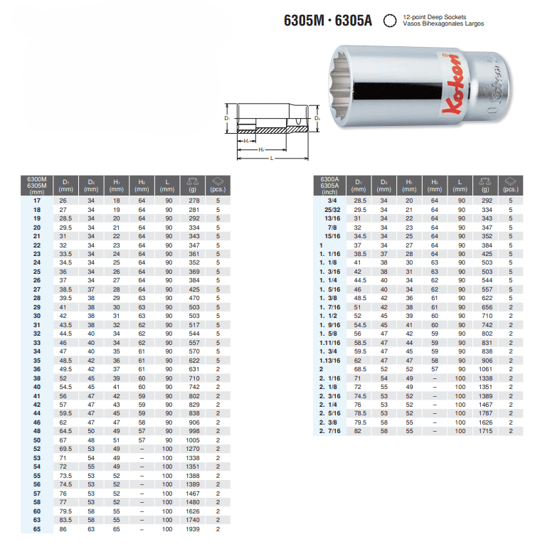 3/4″ 12 POINT DEEP SOCKET 6305A