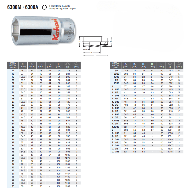 3/4″ 6 POINT DEEP SOCKETS 6300M