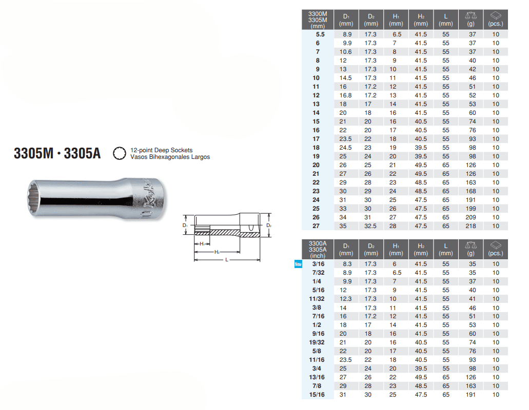 3/8″ 12 POINT DEEP SOCKET 3305M