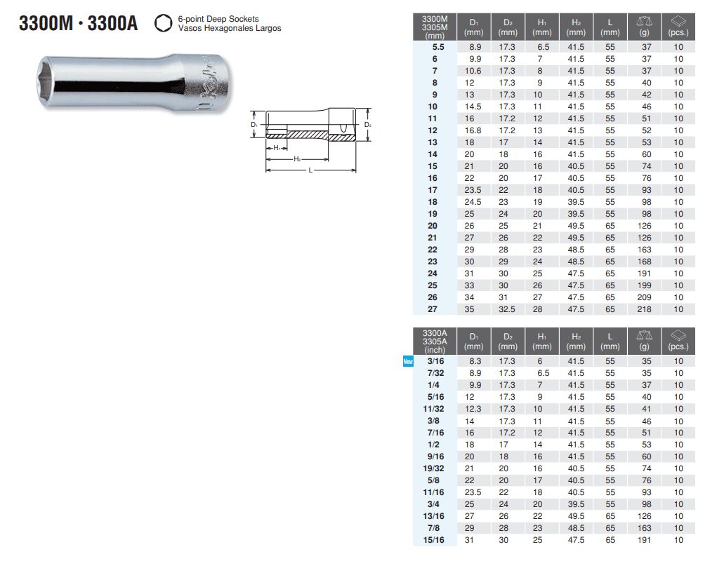 3/8″ 6 POINT DEEP SOCKETS 3300A