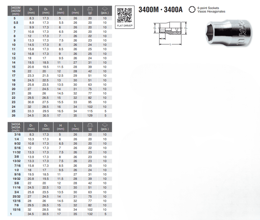 3/8″ 6 POINT SOCKET 3400M