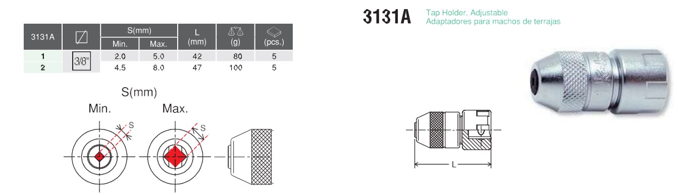 3/8″ Tap Holder, Adjustable 3131A