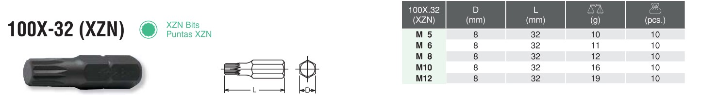 5/16″ XZN Bits 100X-32 (XZN)