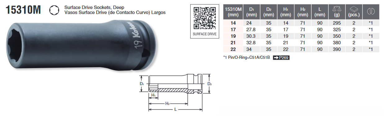 5/8” SURFACE DRIVE DEEP SOCKET 15310M