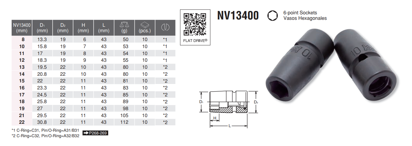 6 POINT SLEEVE DRIVE SOCKET NV13400