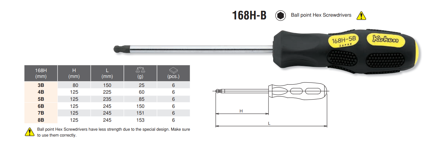 BALL POINT HEX SCREWDRIVER 168H-7B