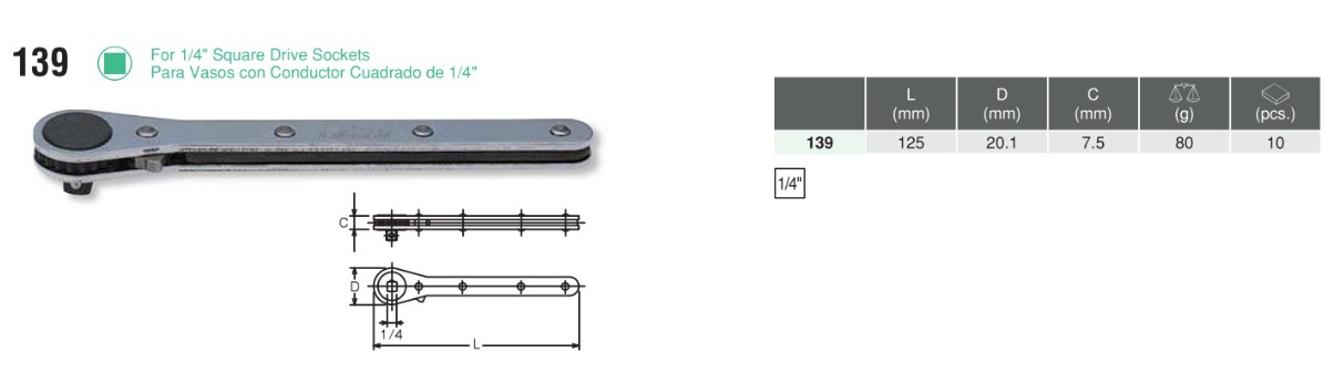 For 1/4″ Square Drive Sockets Ratcheting Ring Wrench 139