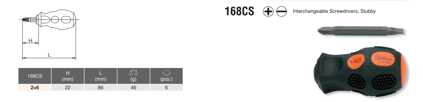 INTERCHANGEABLE SCREWDRIVER 168CS-2X6