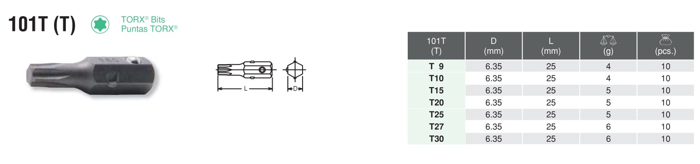 Ratcheting Ring Wrench TORX® Bits 101T (T)