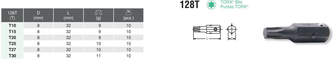 Ratcheting Ring Wrench TORX® Bits 128T