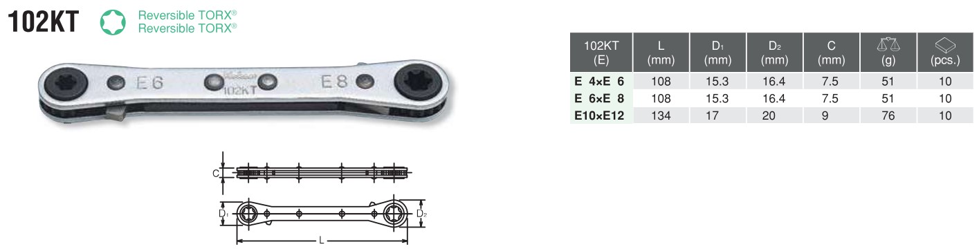 Reversible TORX® Ratcheting Ring Wrench 102KT