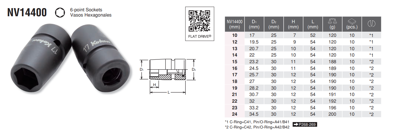 SLEEVE DRIVE 6 POINT SOCKET NV14400